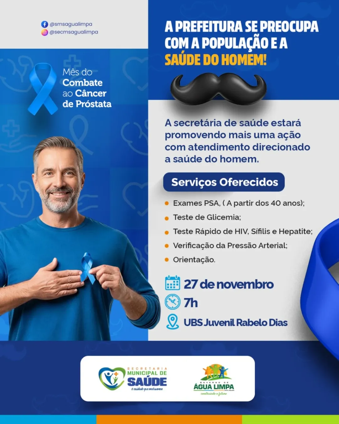 A Prefeitura de Água Limpa e a Secretaria Municipal de Saúde estão unidas para oferecer atenção, acolhimento e exames que podem salvar vidas.